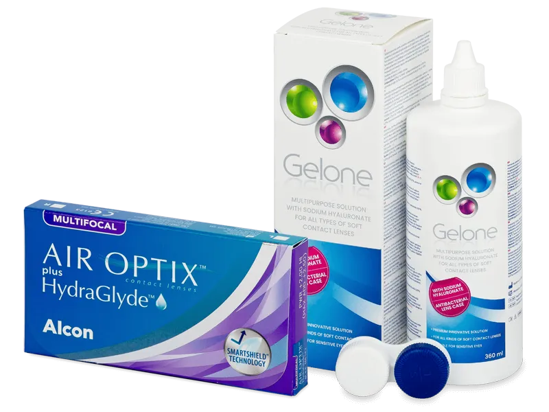 Air Optix plus HydraGlyde Multifocal (6 linser) + Gelone Linsevæske 360 ml